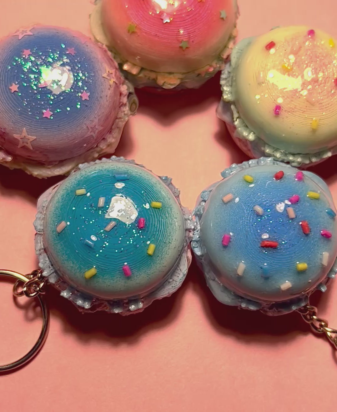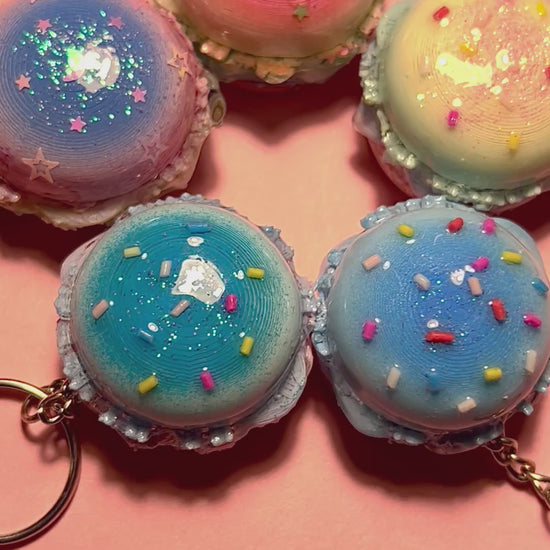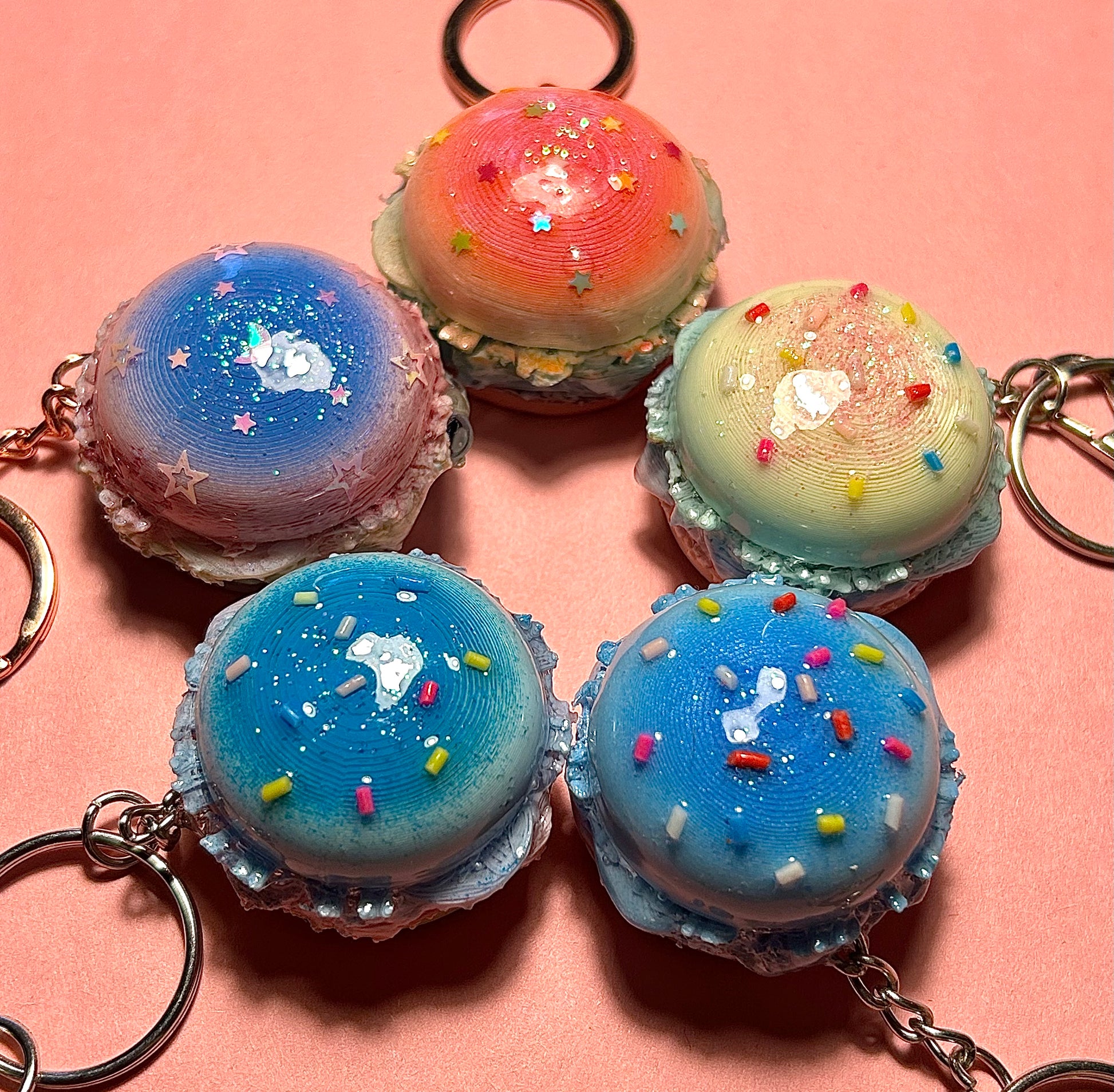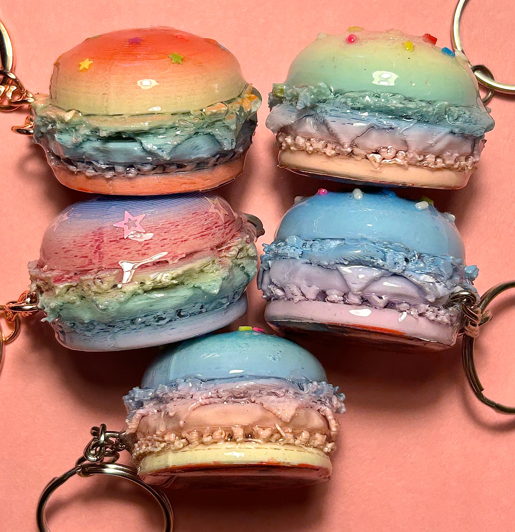 ★🍔 These are my custom-made, 3D printed burger keychains inspired by kawaii dessert macaroons, and come in five different colors and types. Each miniature burger charm is resin-coated, colorful, and perfect for backpacks, purses, or gifts for a stylistic brunchable touch!